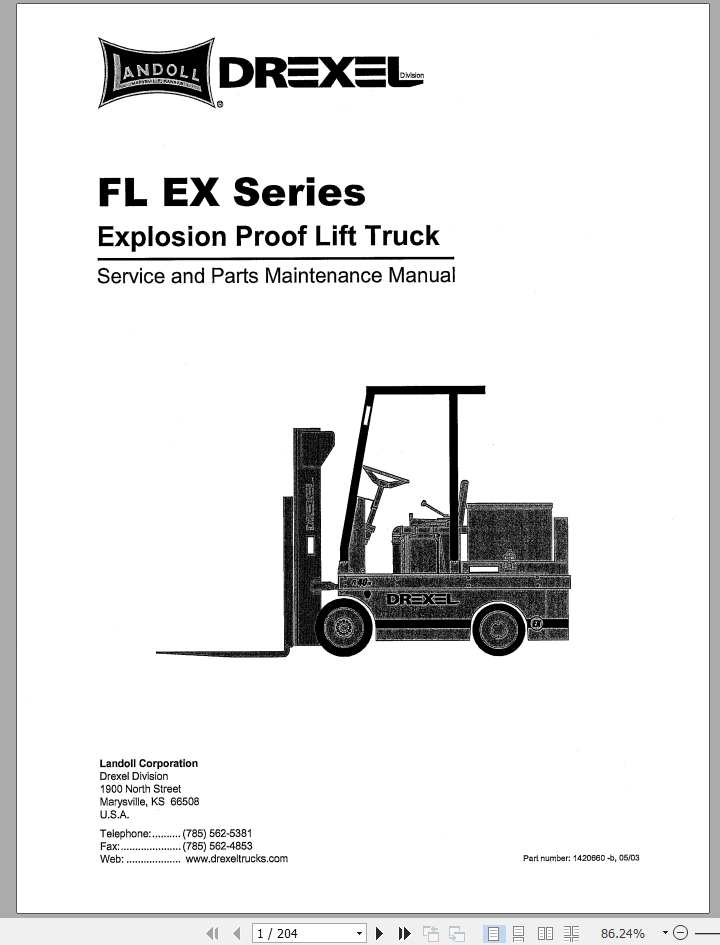 Landoll Drexel FL EX Series Service and Parts Maintenance Manual 1420660