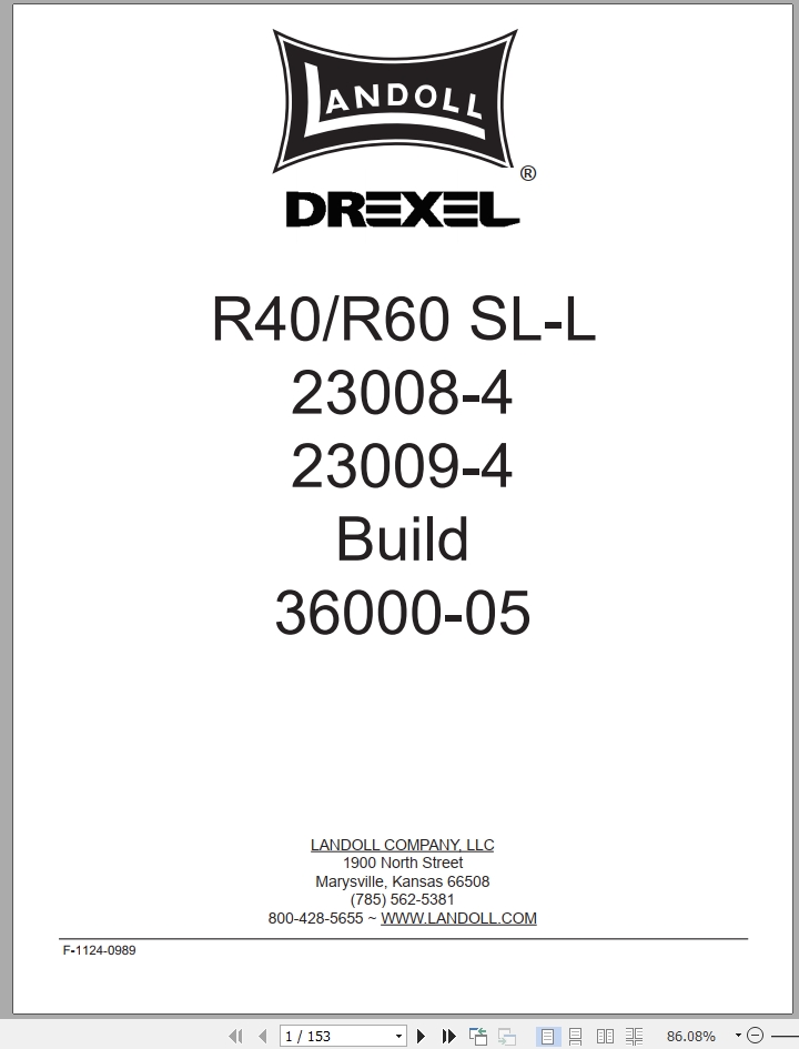 Landoll Drexel R40 R60 SL-L Parts Manual F-1124-0989