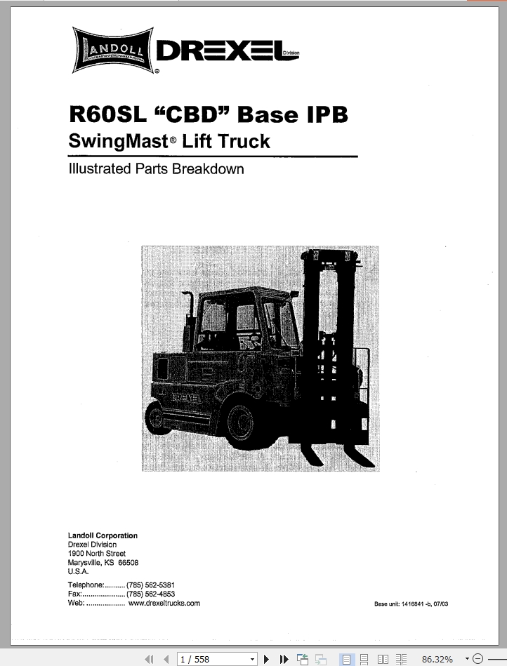 Landoll Drexel R60SL CBD Series Base IPB Part List 1416841