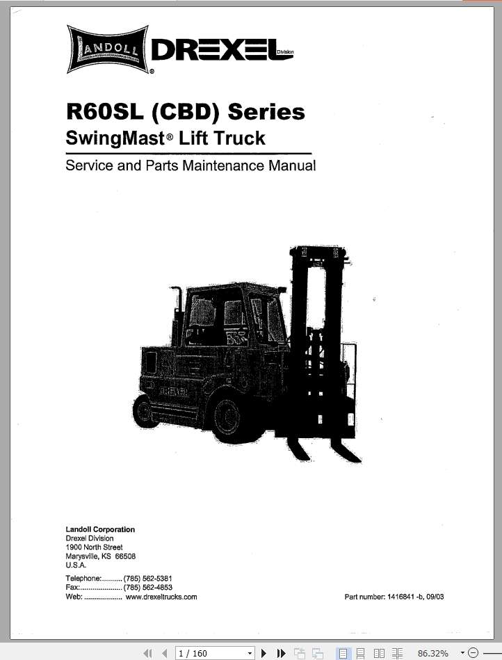 Landoll Drexel R60SL CBD Series Service and Parts Maintenance Manual 1416841
