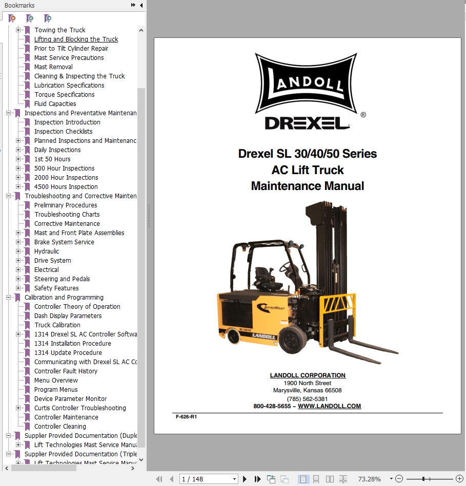 The Bookmarks of Landoll Drexel SL 30 40 50 AC Forklift Maintennance Manual: