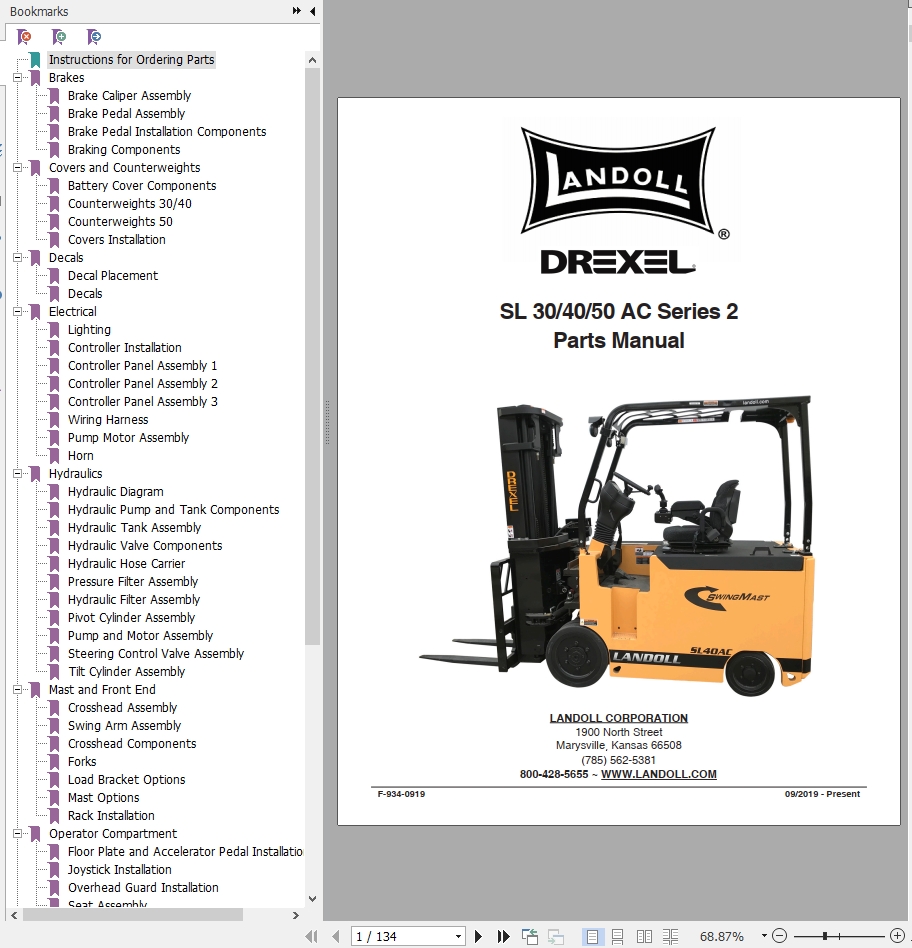 The Bookmarks of Landoll Drexel SL 30 40 50 AC Series 2 Forklift Parts Manual: