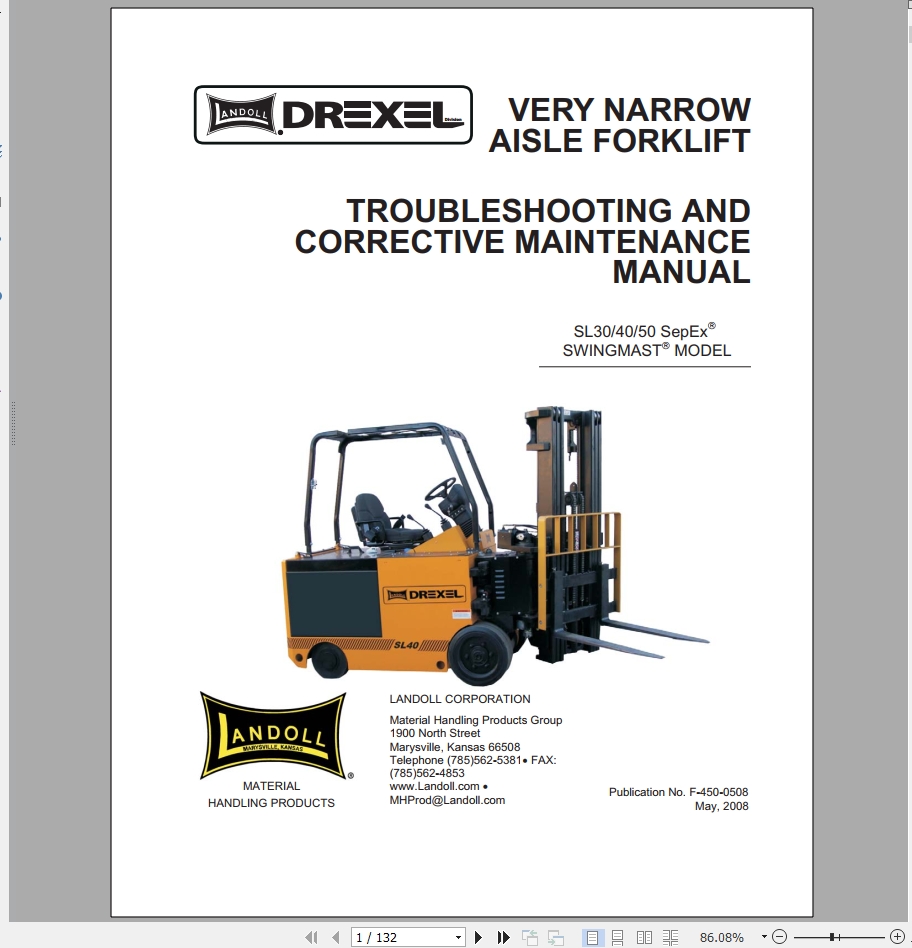 Landoll Drexel SL 30 40 50 SE Swingmast Troubleshooting And Corrective Maintenance Manual F-450-0307