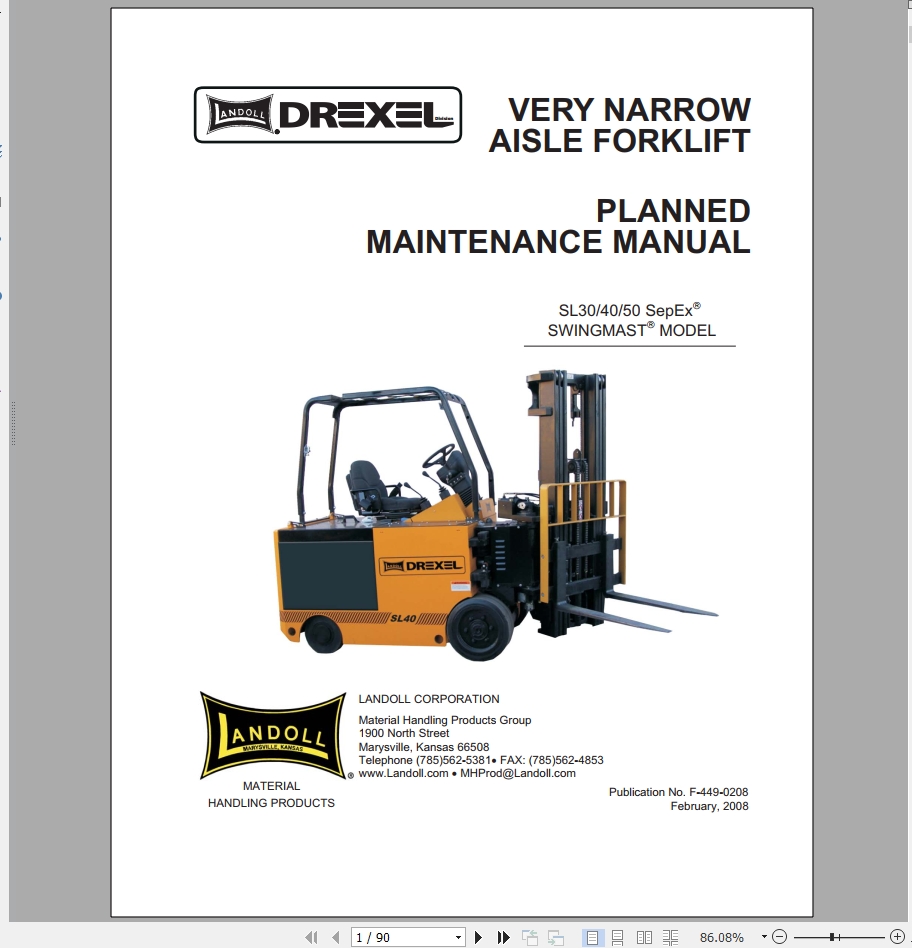 Landoll Drexel SL 30 40 50 SE Swingmast Planned Maintenance Manual F-449-0208