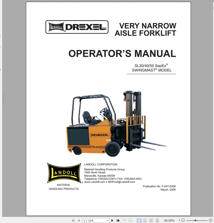 Landoll Drexel SL 30 40 50 SE Swingmast Part Manual F-447-0308