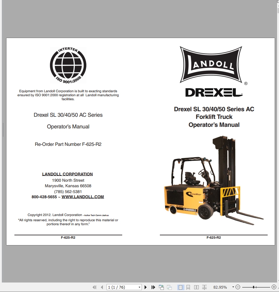 Landoll Drexel SL 30 40 50 Series AC Operator's Manual F-625-R2