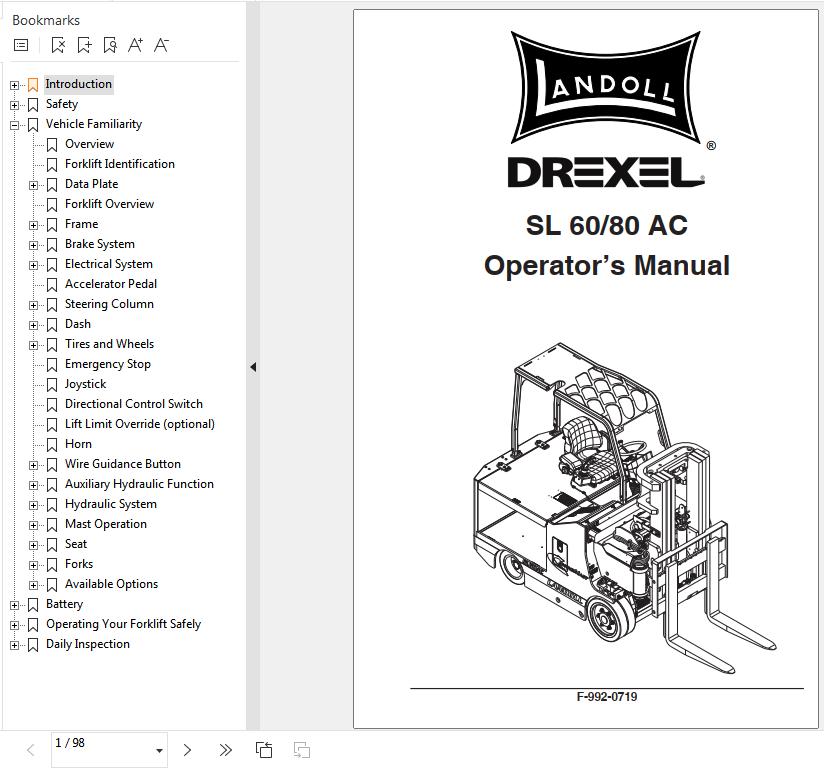 The Bookmarks of Landoll Drexel SL 60 80 AC Forklift Operator's Manual: