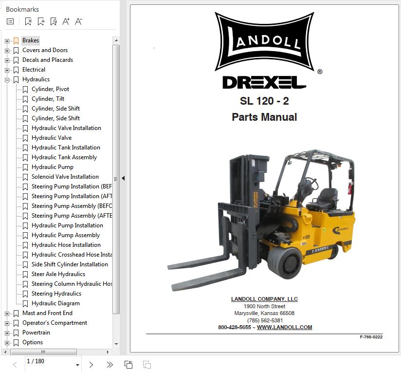 Landoll Drexel SL120 Series 2 Parts Manual F-766-0222