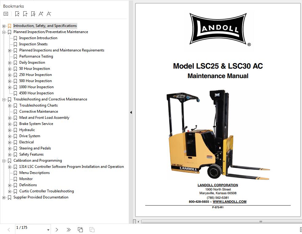 Landoll LSC25AC And LSC30AC Maintenance Manual F-573-R1 Edition