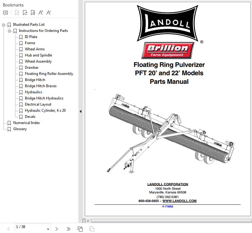 Landoll PFT 20 Through 22 Floating Ring Pulverizer Parts Manual F-779R0
