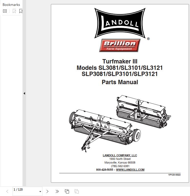 Landoll SL3081 To SLP3121 Turfmaker III Parts Manual 1P123-0522