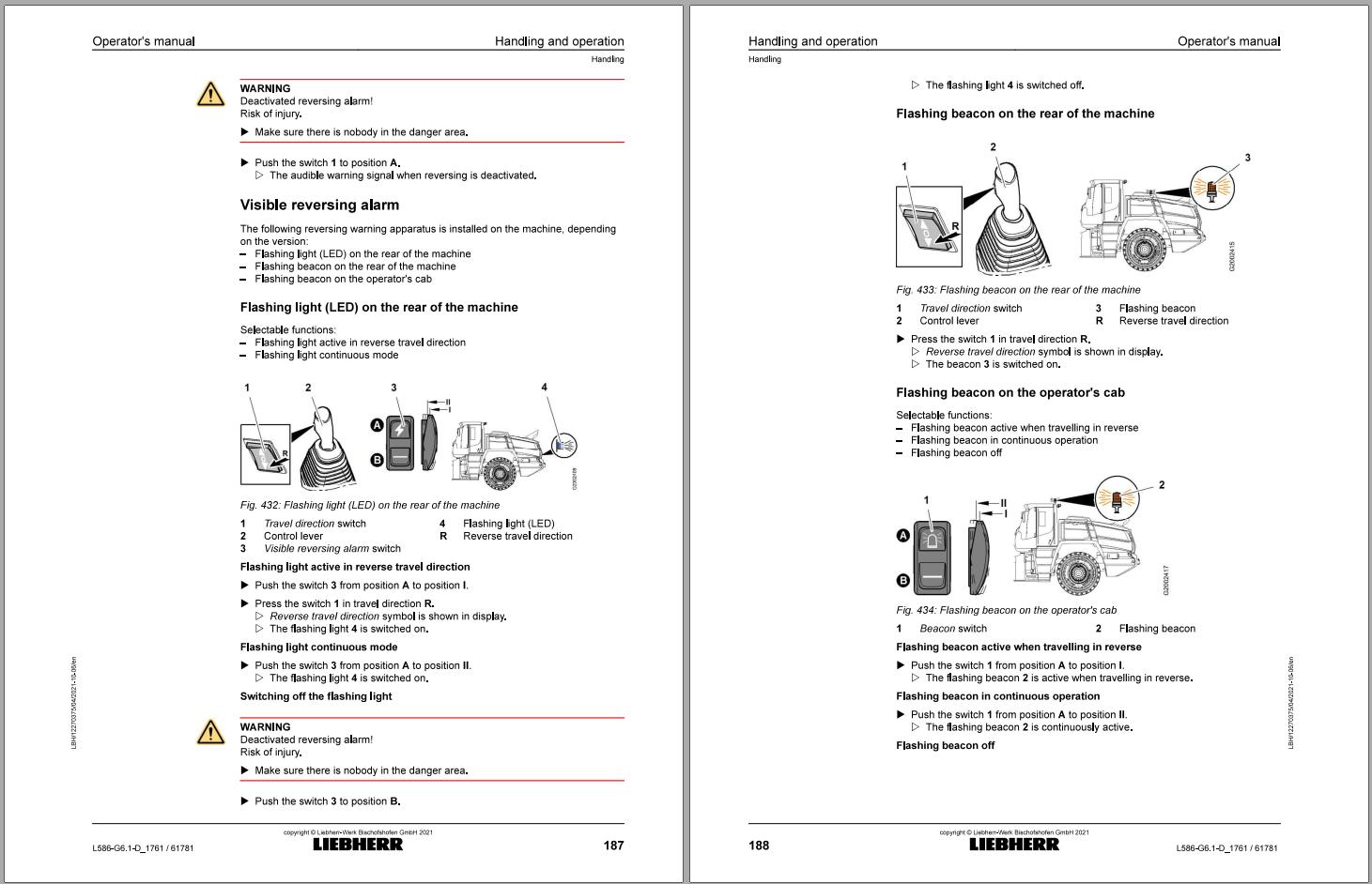 The Bookmarks of Liebherr L586 Original Operators Manual: