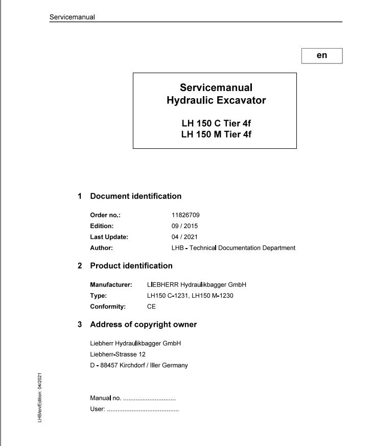 Liebherr LH150C LH150M Service Manual 118267009 04.2021