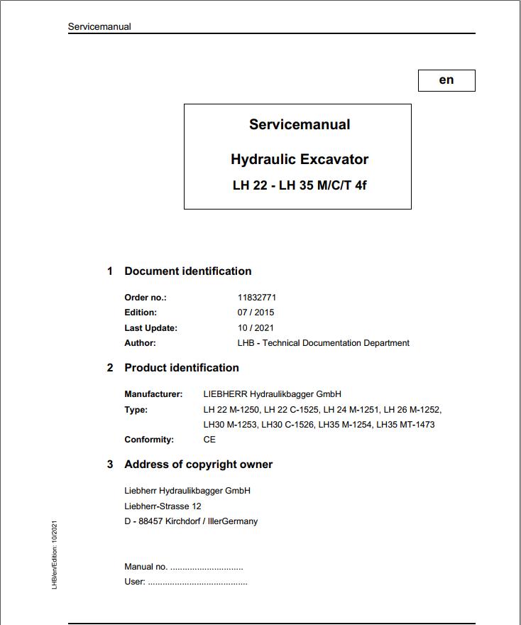 Liebherr LH22 - LH35M LH35C LH35T Service Manual 11832771 10.2021