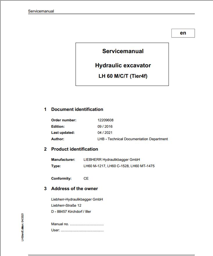 Liebherr LH60M LH60C LH60T Service Manual 12209608 04.2021