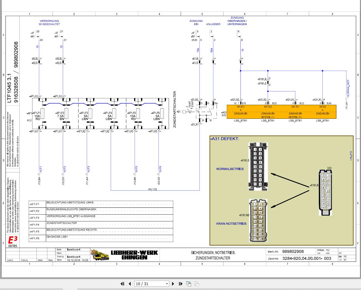 Liebherr LTF 1045-4.1 Z75593 Electric and Hydraulic Diagrams DE