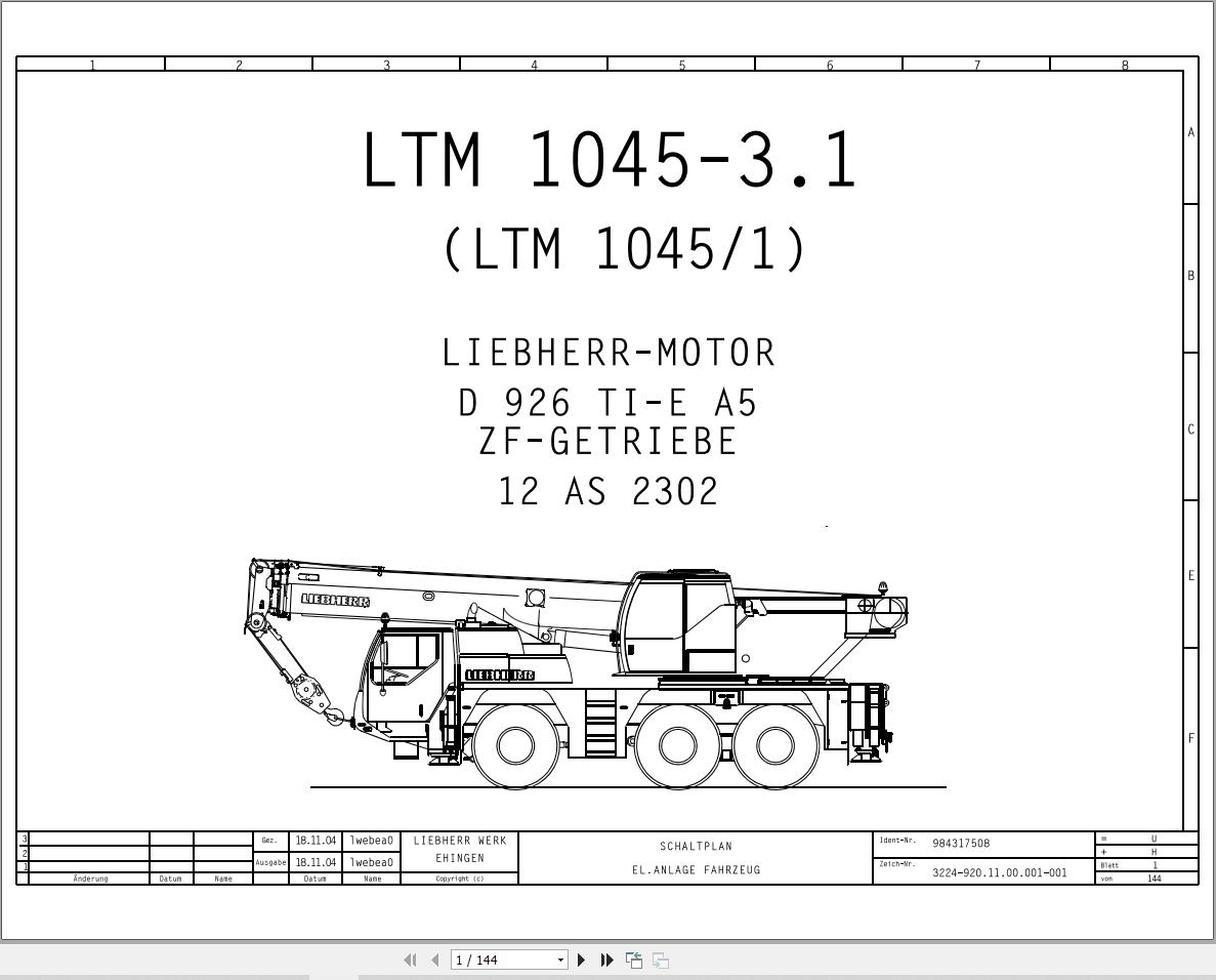 Liebherr LTM 1045-3.1 Z53447 Electric and Hydraulic Diagrams DE