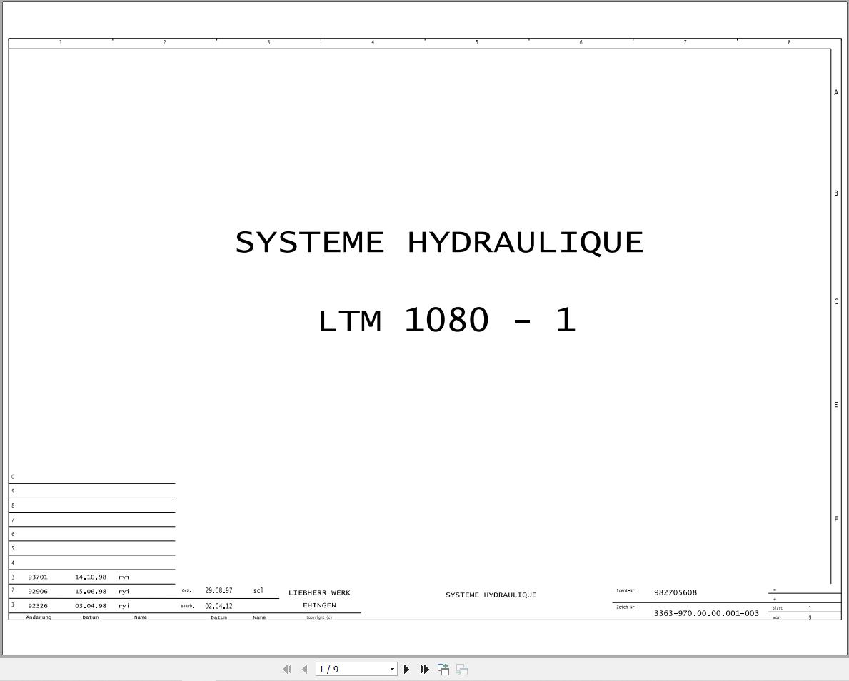 Liebherr LTM 1080-1 Z23823 Electric and Hydraulic Diagrams FR