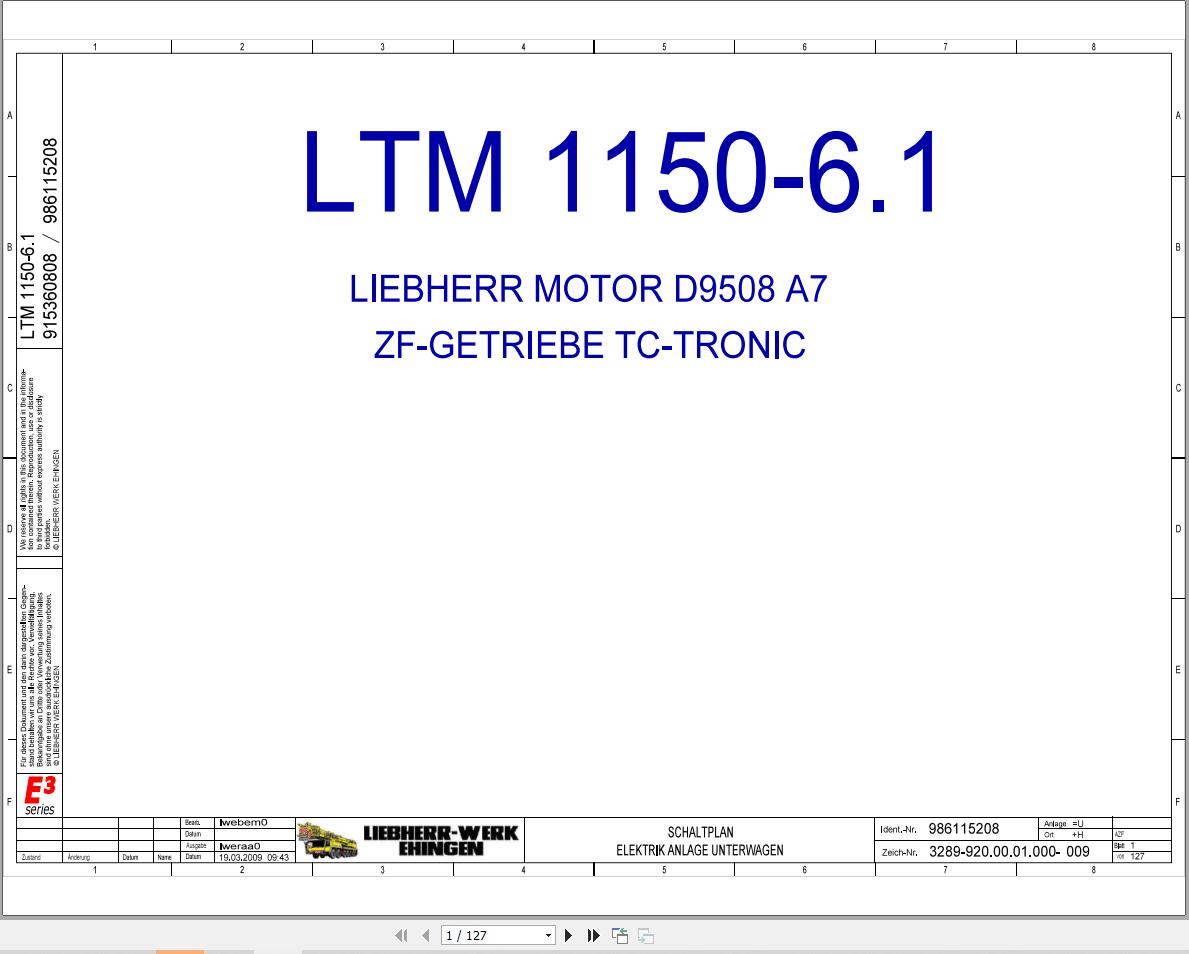 Liebherr LTM 1150-6.1 Z68500 Electric and Hydraulic Diagrams DE