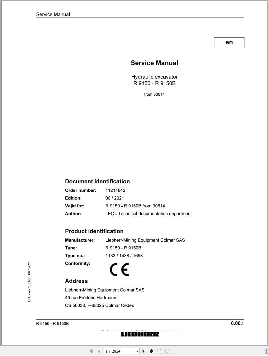 Liebherr R9150 R9150B Service Manual 11211842 06.2021