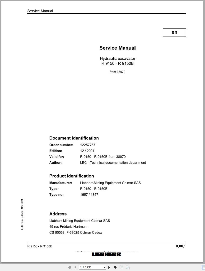 Liebherr R9150 R9150B Service Manual 12257767 12.2021