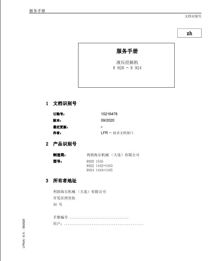 Liebherr R920 R922 R924 Service Manual 10216478 09.2020_ZH