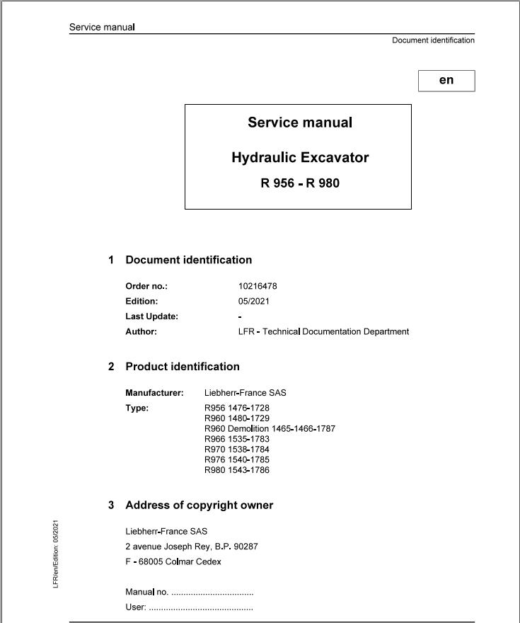 Liebherr R956 - R980 Service Manual 10216478 05.2021