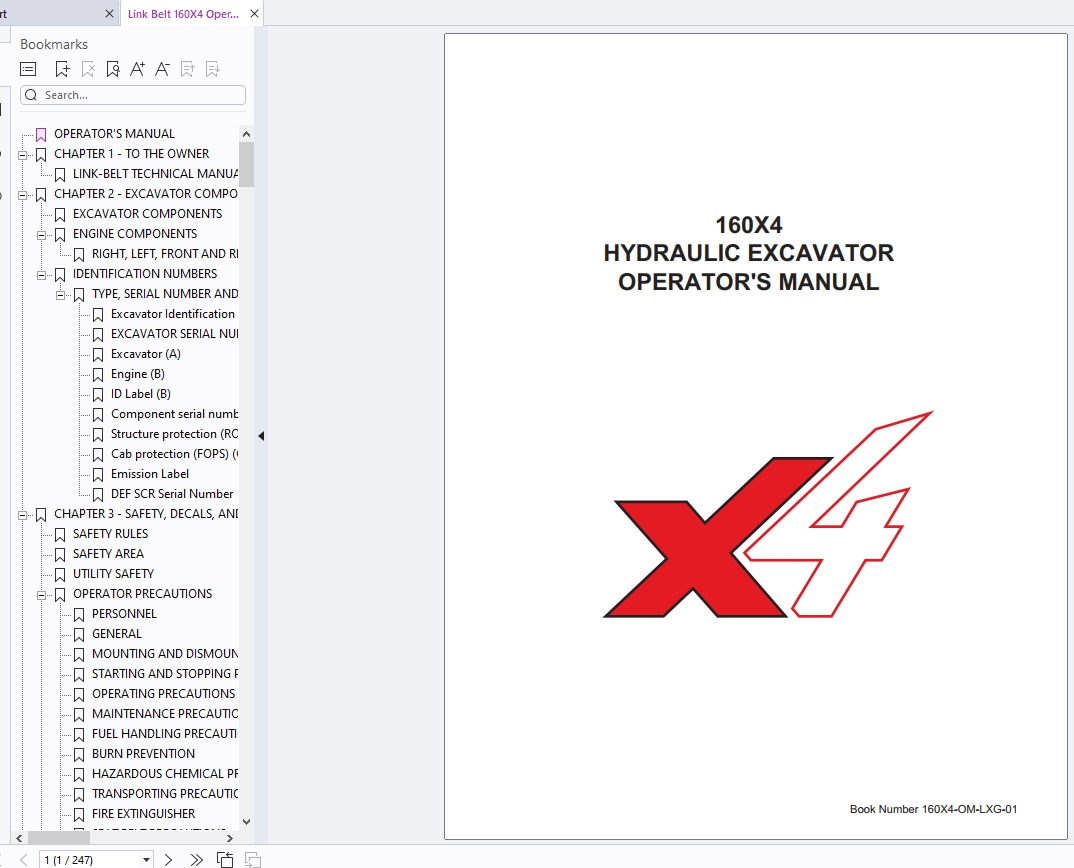 The Bookmarks of Link Belt 160X4 Operator's Manual 160X4-OM-LXG-01:
