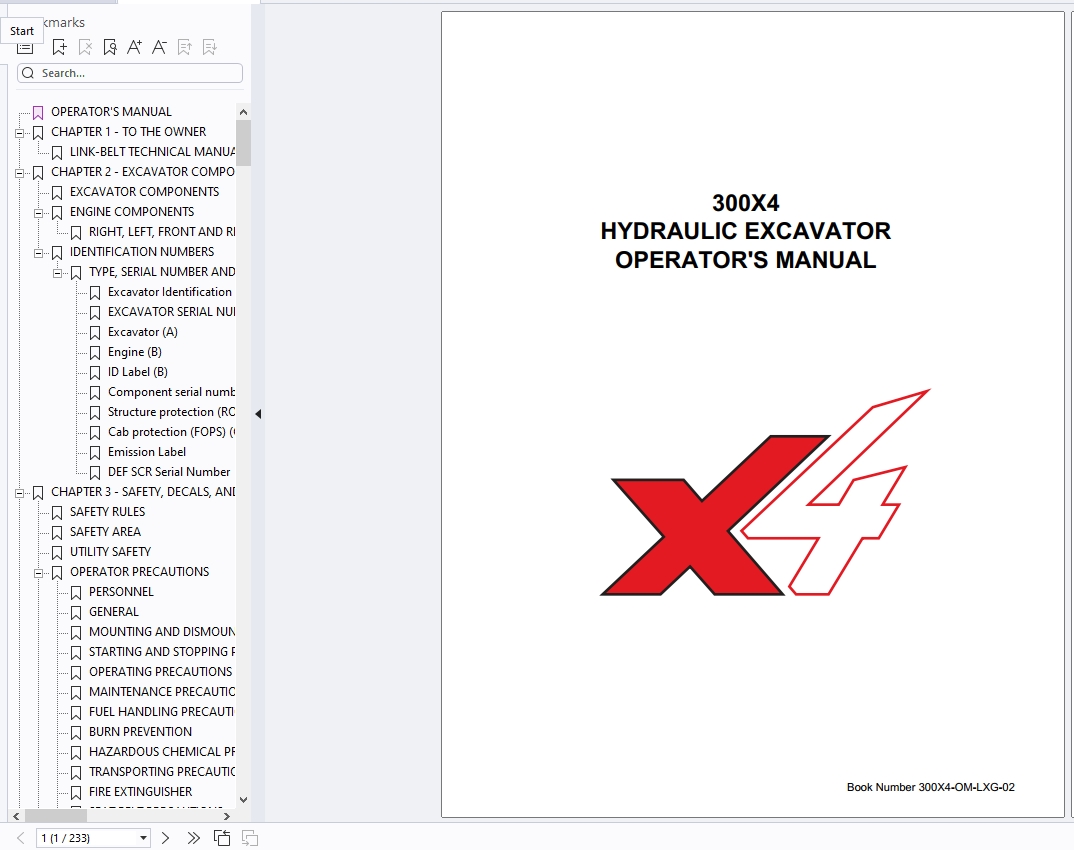 The Bookmarks of Link Belt 300X4 Operator's Manual 300X4-OM-LXG-02: