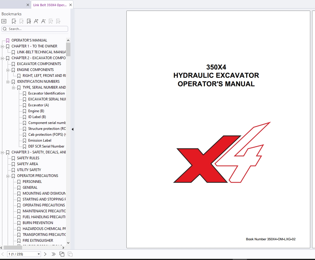 The Bookmarks of Link Belt 350X4 Operator's Manual 350X4-OM-LXG-02: