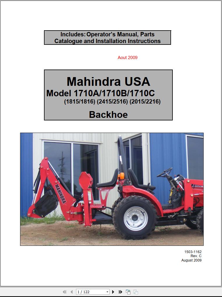 Mahindra 1710A 1710B 1710C Backhoe Operator Manual Parts Manual and Installation Instruction