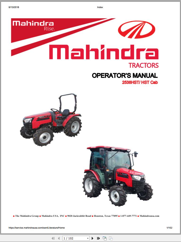 Mahindra 2538 HST Cab Operator Manual