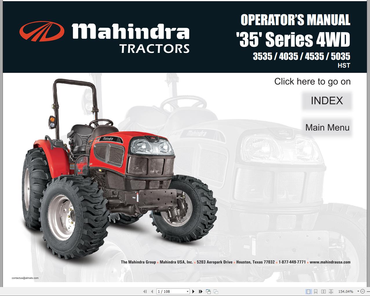 Mahindra 35 Series 4WD 3535 4035 4535 5035 HST Operator Manual