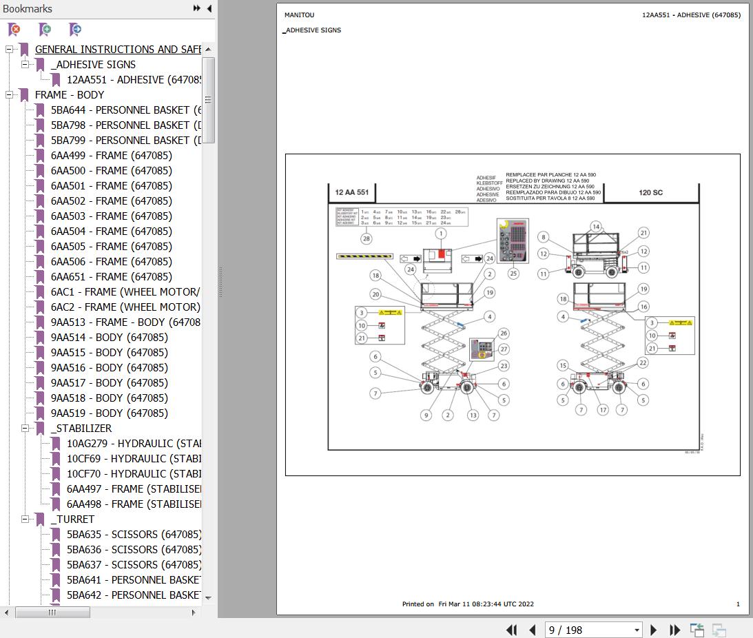 The Bookmarks Of Manitou 100 SC Mobile Elevating Platform Parts Catalog: