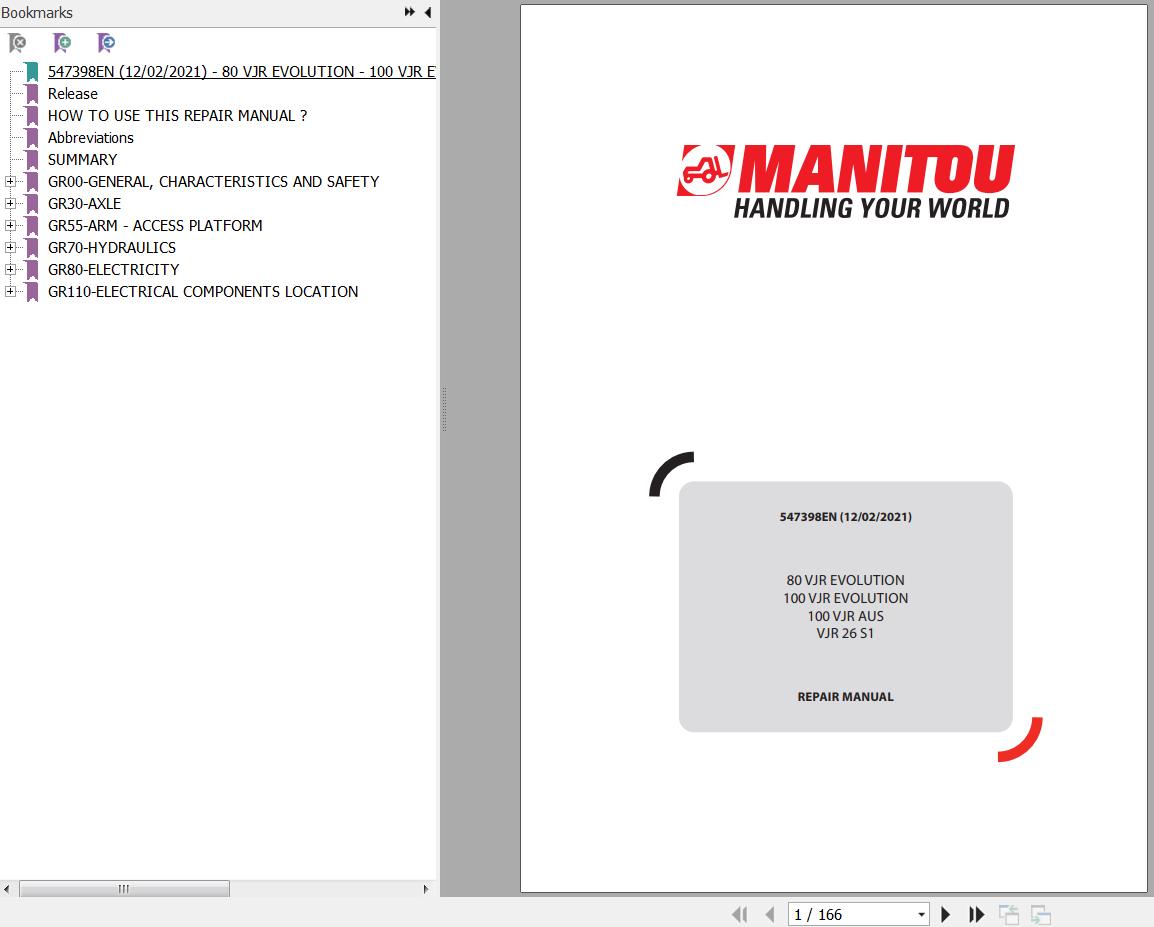 Manitou 100 VJR EVOLUTION 80 VJR EVOLUTION 100 VJR AUSTRAULIE VJR 26 S1 Repair Manual 547398