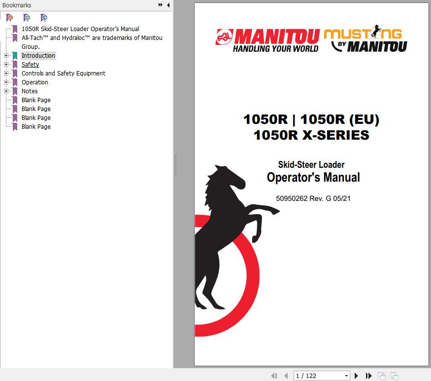 The Bookmarks of Manitou 1050R Skid-Steer Loader Operator's Manual: