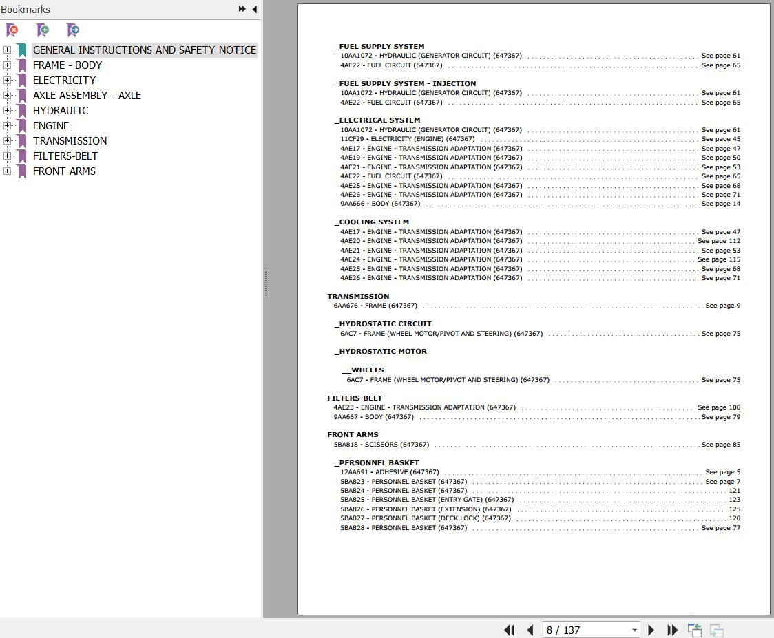 The Bookmarks Of Manitou 120 SC2 Mobile Elevating Platform Parts Catalog: