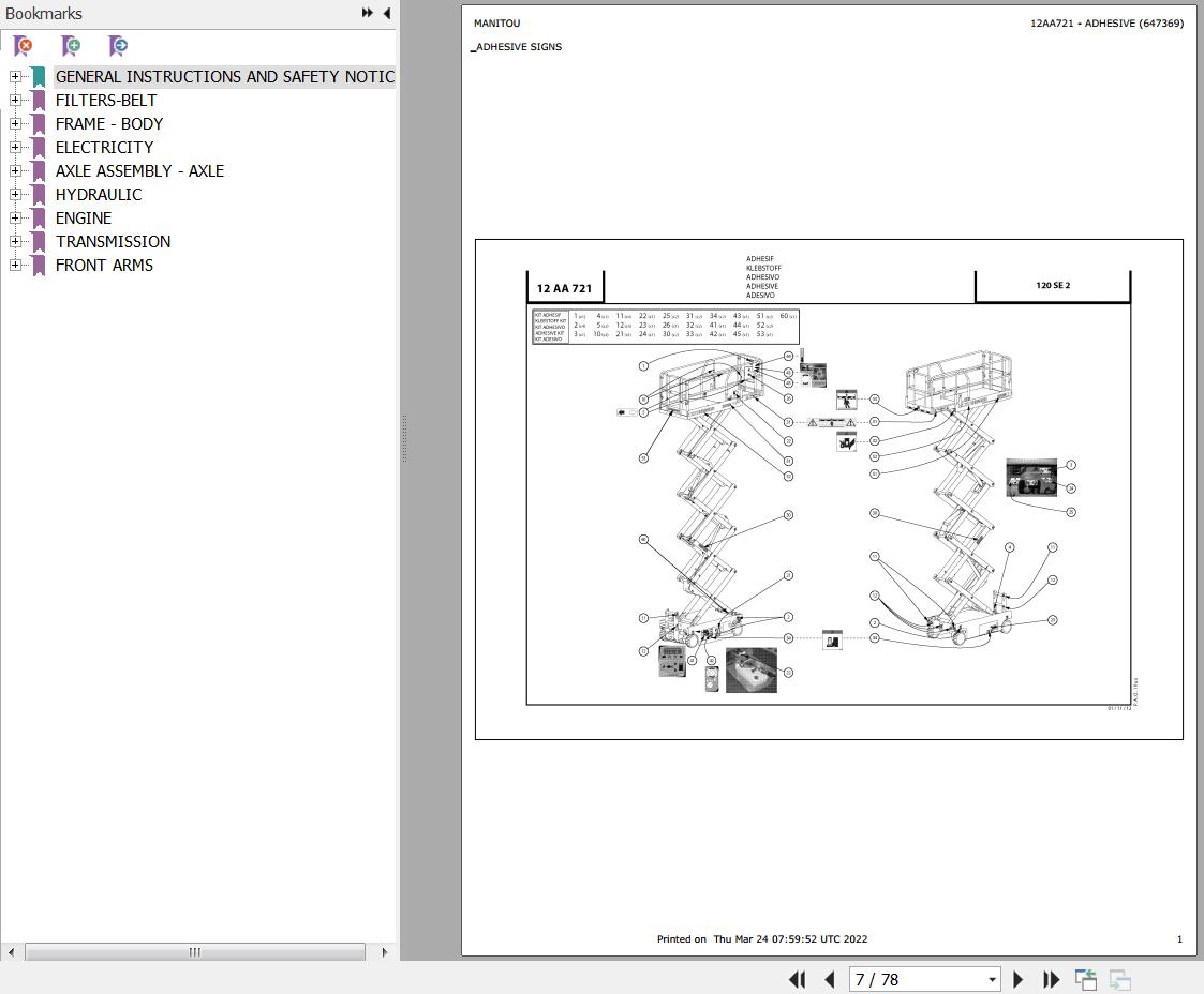 The Bookmarks Of Manitou 120 SE 2 Mobile Elevating Platform Parts Catalog: