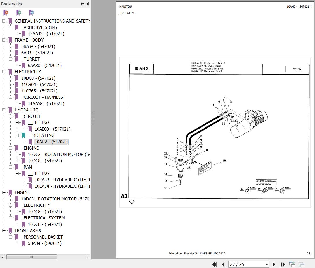 The Bookmarks Of Manitou 120 TM Mobile Elevating Platform Parts Catalog:
