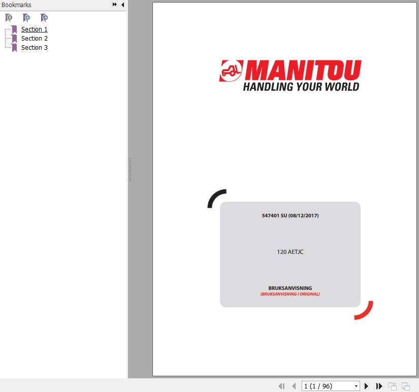 The Bookmarks of Manitou 120 AETJC Mobile Elevating Work Platform Operator's Manual: