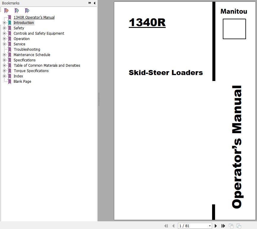 The Bookmarks of Manitou 1340R Skid-Steer Loader Operator's Manual: