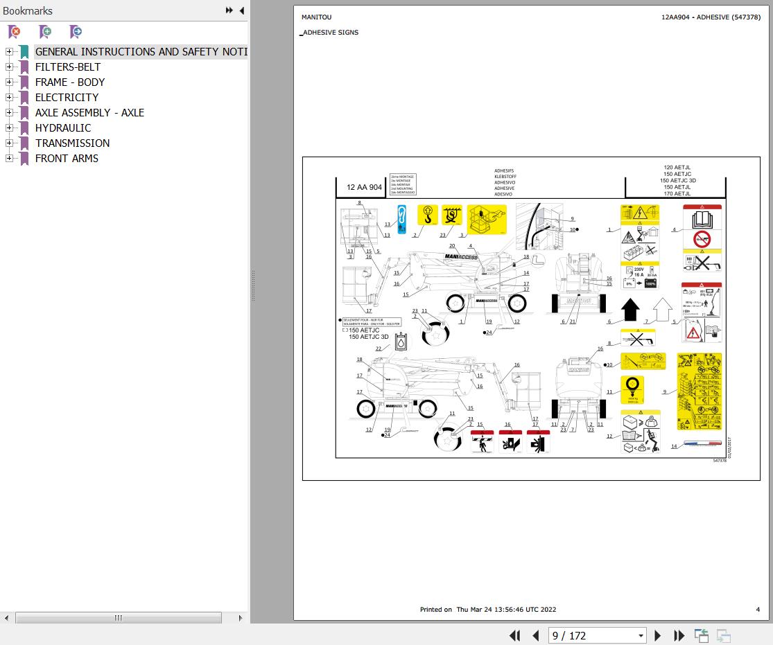 The Bookmarks Of Manitou 150 AETJL Mobile Elevating Platform Parts Catalog: