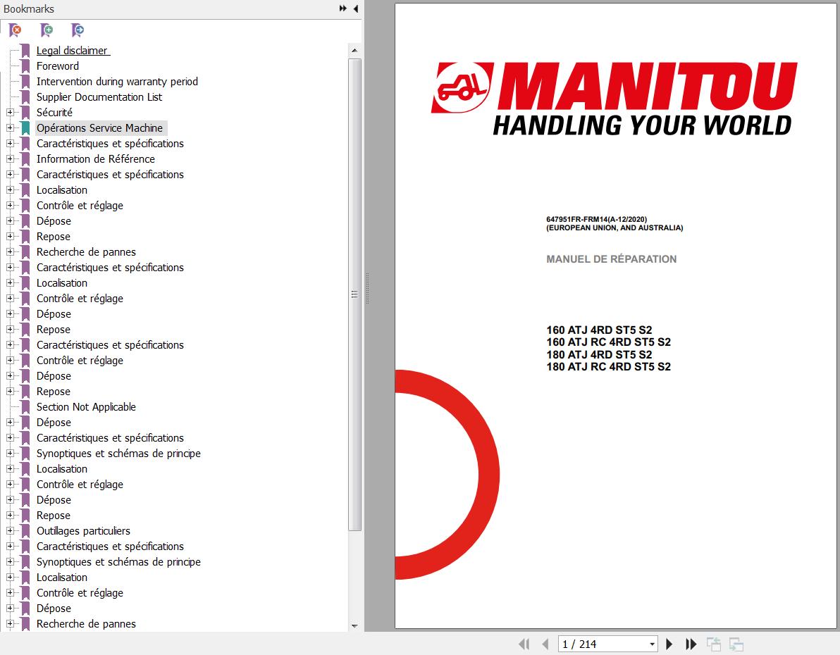Manitou 160 ATJ 160 ATJ RC 180 ATJ 180 ATJ RC 4RD ST5 S2 Repair Manual 647951