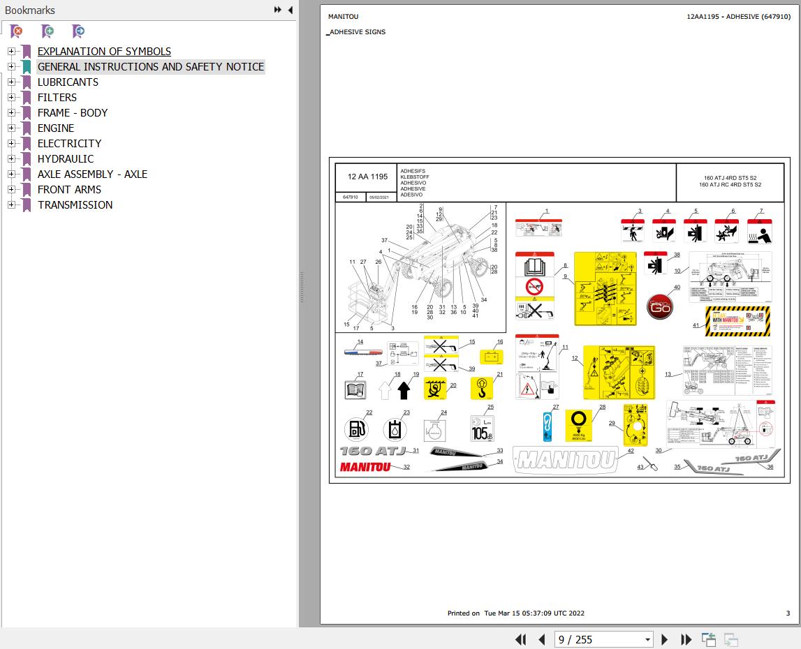 Manitou 160 ATJ 4RD ST5 S2 Parts Catalog 647910