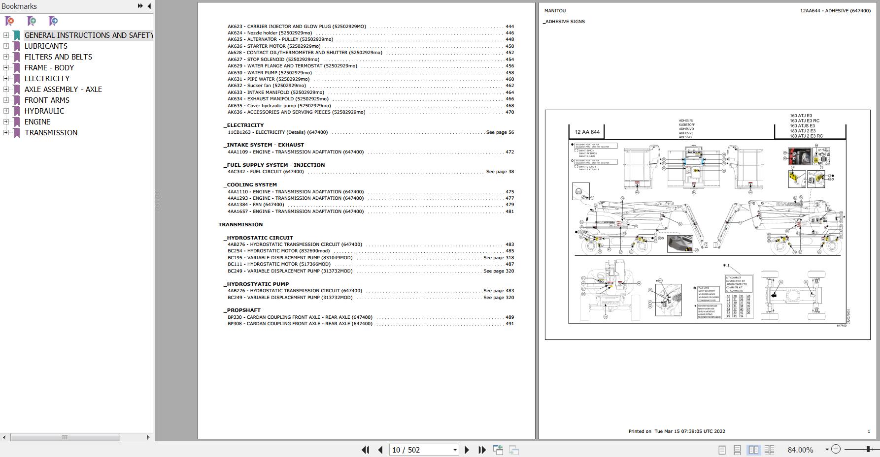 The Bookmarks Of Manitou 160 ATJ E3 160 ATJ RC E3 160 ATJ S E3 180 ATJ 2 E3 180 ATJ 2 RC E3 Mobile Elevating Platform Parts Catalog: