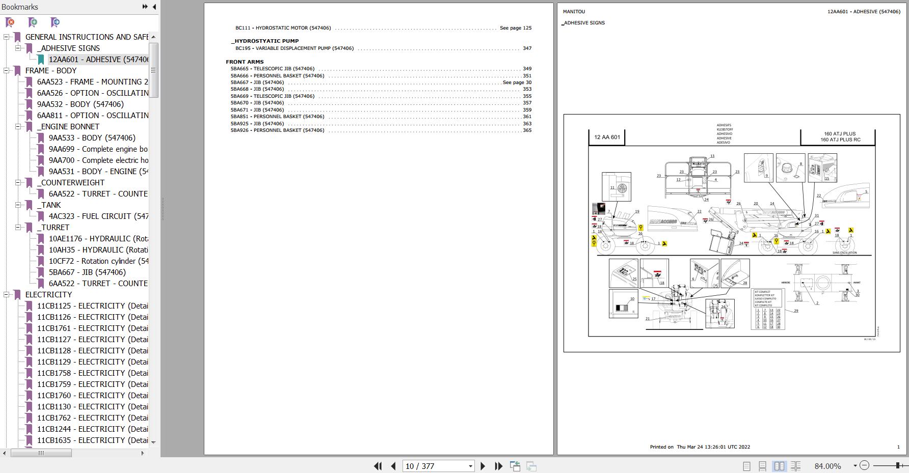 The Bookmarks Of Manitou 160 ATJ PLUS Mobile Elevating Platform Parts Catalog: