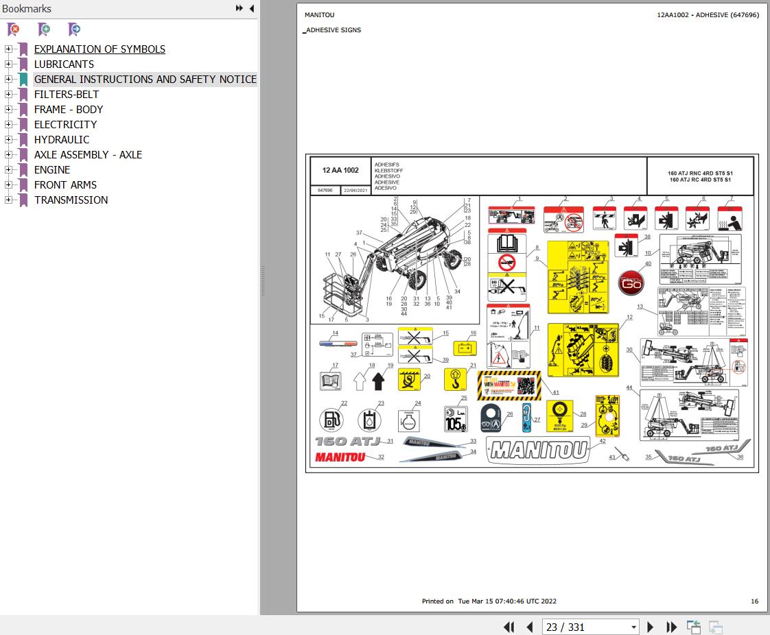 The Bookmarks Of Manitou 160 ATJ RC 4RD ST5 S1 Mobile Elevating Platform Parts Catalog: