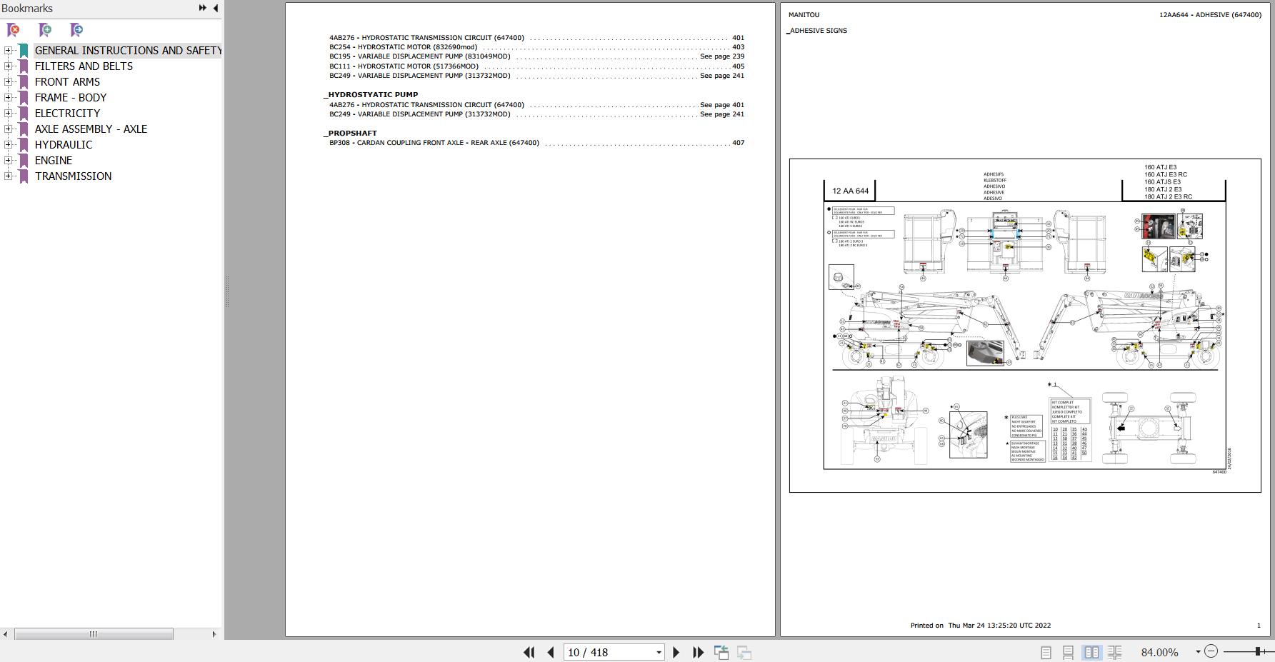 The Bookmarks Of Manitou 160 ATJ RC E3 Mobile Elevating Platform Parts Catalog: