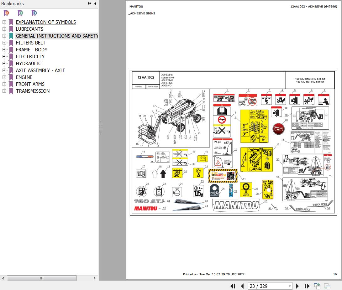 The Bookmarks Of Manitou 160 ATJ RNC 4RD ST5 S1 Mobile Elevating Platform Parts Catalog: