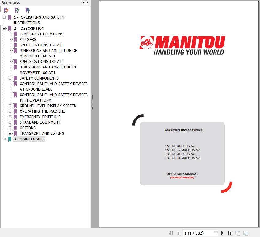 Manitou 160 ATJ 4RD ST5 S2 160 ATJ RC 4RD ST5 S2 180 ATJ 4RD ST5 S2 180 ATJ RC 4RD ST5 S2 Operator's Manual 647909EN-USM4A112020